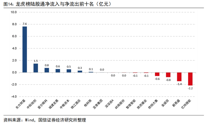 20241008披露龙虎榜数据中,陆股通净流入较多的股票是东方财富、中际旭创、爱尔眼科、城建发展、中粮资本、锦江酒店、格科微、亚泰集团等,陆股通净流出较多的股票是亿纬锂能、新易盛、金诚信、供销大集、陕西煤业、智微智能、岭南股份、深深房A等,下图展示了今日龙虎榜披露的陆股通买卖股票中净流入与净流出的前十名,不足十名时直接取现有数量。