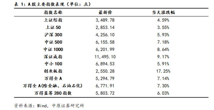 周二A股市场高开低走、震荡上涨,早盘股指高开后震荡回落,盘中股指在3372点附近获得支撑,午后股指维持震荡,尾盘企稳回升,盘中半导体、软件开发、电池、互联网服务以及证券等行业表现较好;旅游酒店、航空机场、煤炭以及房地产等行业表现较弱,沪指全天基本呈现震荡上扬的运行特征。当前上证综指与创业板指数的平均市盈率分别为14.24倍、34.99倍,处于近三年中位数平均水平,适合中长期布局。两市周二成交金额34851亿元,处于近三年日均成交量中位数区域上方。新国九条发布,推动市场走向成熟,提振市场长期信心。中央政治局会议释放重磅信号,后续推出一系列财政措施和其他支持性政策预期显著增强。央行、金融监管总局、证监会同时推出多项重磅政策,经济有望企稳回升。美国非农就业数据超预期,经济仍具一定韧性,11月降息25个基点概率增强。随着国内宏观调控、促增长政策持续落地推进,未来股指总体预计将保持震荡上行格局,同时仍需密切关注政策面、资金面以及外部因素的变化情况。我们建议投资者短线关注证券、保险、芯片、医药、非银金融、软件开发以及新能源等行业的投资机会。