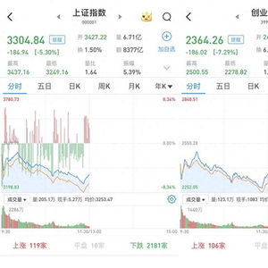 至午间收盘,上证综指跌5.3%,报3304.84点;科创50指数跌2.19%,报1001.58点;深证成指跌6.19%,报10783.4点;创业板指跌7.29%,报2364.26点。