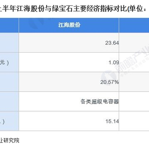江海股份和绿宝石是中国超级电容器行业代表性上市公司。从业务收入来看,2024年上半年江海股份业务收入约1.09亿元,高于绿宝石;从毛利率来看,江海股份2024年上半年毛利率约20.57%,绿宝石为16.69%;从产量来看,2023年江海股份电容器产品产量为15.14亿只。