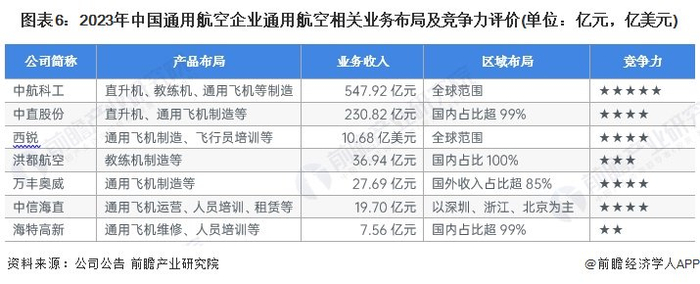 中国通用航空行业企业布局及竞争力评价