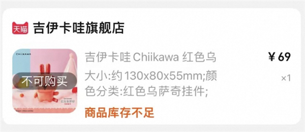 有消费表示,在吉伊卡哇天猫官方旗舰店限量开抢的红色乌萨奇,或许是结合了最近走红网络的“红温了”的梗点,在国内没有正版商品售卖渠道时,在二级市场的价格一度可达千元。