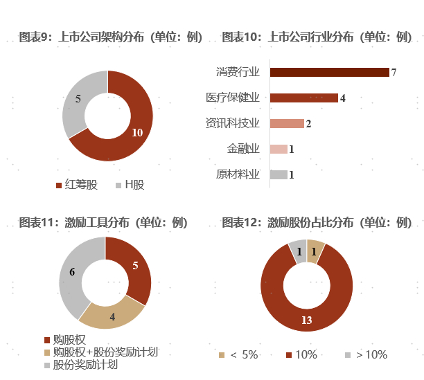 上市架构:红筹占比2/3(10例),H股占比1/3(5例)