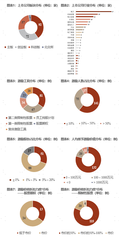 注5. 因67例仅使用员工持股计划的激励计划无相关信息,已剔除;并对使用复合工具的28例激励计划,根据所使用的激励工具类型拆开后剔除员工持股计划进行分析并统计在内