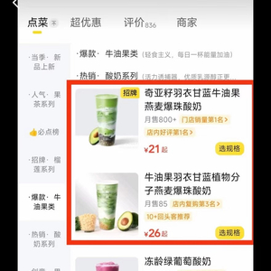 “芝芝莓莓芒芒桃桃”“牛油果羽衣甘蓝植物分子燕麦爆爆珠酸奶”“秘鲁黑玛卡牡蛎肉苁蓉黄精鹿鞭人参铁观音娟姗奶”也是同理,消费者能大致从这些名字中判断出产品的原料。