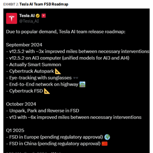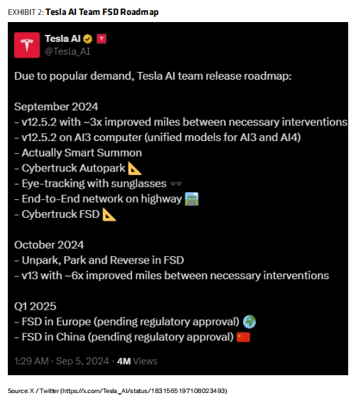 “特斯拉可能会提供FSD进展的更新,可能包括更新的路线图,FSD v13的发布,以及或在中国推出FSD。”