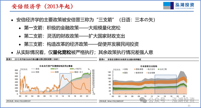 “安倍经济学”可以被概括为“安倍三箭”,即积极的金融政策、灵活的财政政策和构造改革的经济政策。从实际执行的情况看,仅积极的金融政策、即量化宽松被严格执行,其他政策的执行情况差强人意,安倍执政时期日本的财政支出并无显著增长。