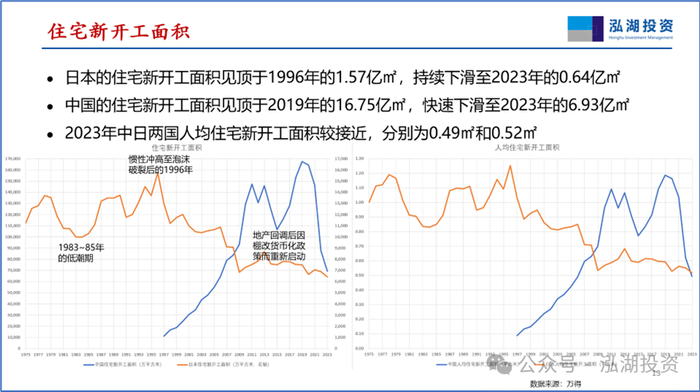 我们可以比较中日两国的住宅新开工面积,尤其是人均住宅新开工面积。