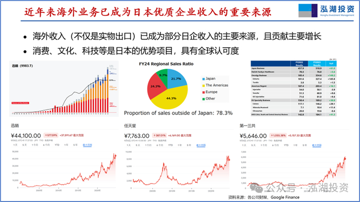 日本的企业普遍将海外业务视为自己发展的重点,部分日本企业的大部分收入也来自海外,日本企业的海外收入的增长也驱动着上市公司股票价格的上涨。