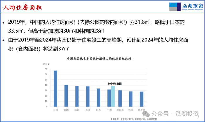 从存量的角度出发:目前国内的人均住宅面积已处于较高水平,继续大幅提升的空间并不大
