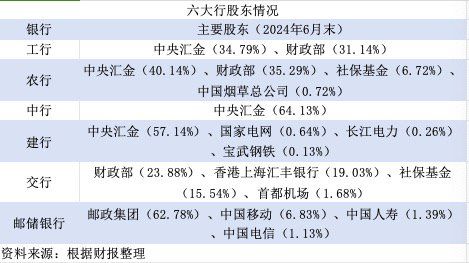 中央财政的注资可能还需要考虑到六大行不同的股权结构。据界面新闻记者梳理,目前财政部直接持有工行、农行、交行的股份,但没有直接持有中行、建行、邮储银行的股份;中央汇金直接持有四大行的股份;邮储银行的股东既没有财政部,也没有中央汇金。这样的股权结构意味着中央财政或可直接注资工行、农行、交行,但要注资中行、建行可能要通过中央汇金。