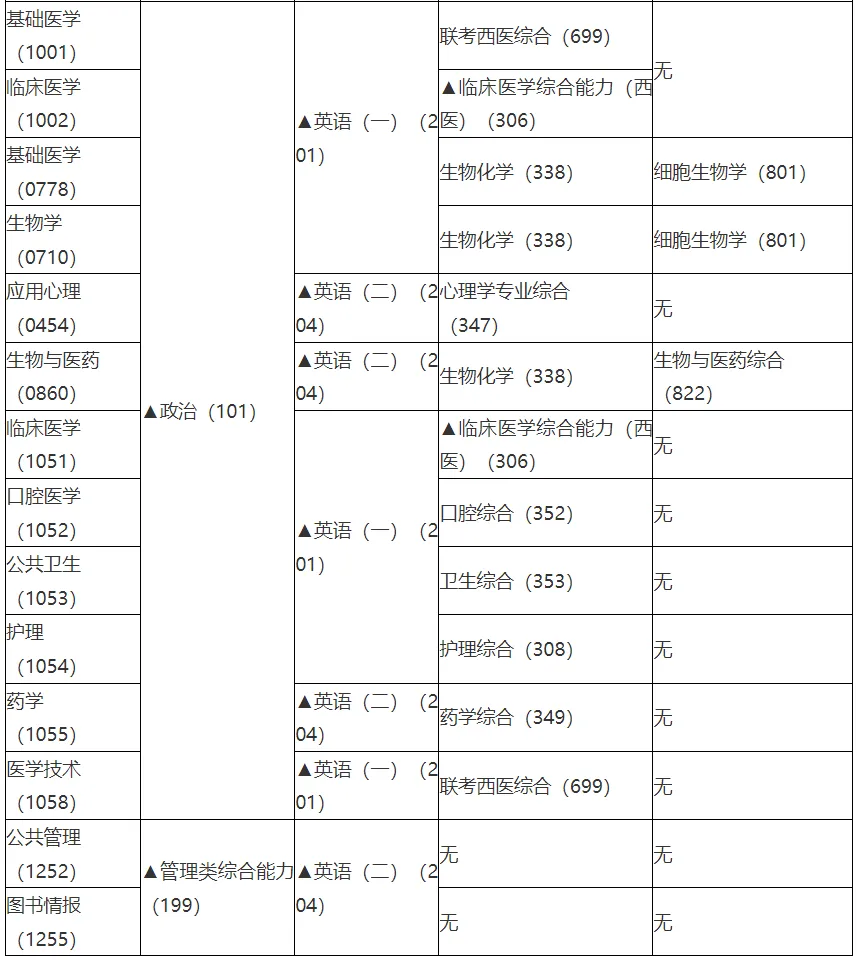 说明:加“▲”符号的科目为全国统考,由教育部考试中心发布考试大纲并统一命题。未标注的科目由我校自主命题,考试大纲详见附件。