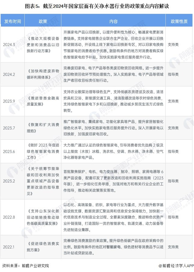 近年来,为更好的引导净水器行业为代表的电器产业的良性发展,政府及有关部门出台了一系列的指导类政策,政策主要围绕发展促进产品节能化、环保化发展等方向。同时鼓励家电回收,充分资源利用,助力我国2030碳达峰的长远目标。