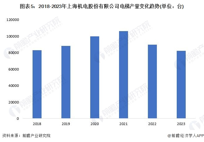 从生产现状来看,2018-2023年,上海机电股份有限公司电梯产量整体呈上涨趋势。2023年,公司电梯产量为82472台,同比下降8.25%。