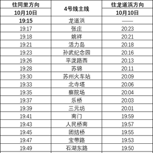 10月10日4号线及支线提前结束运营,市区段和相城段的乘客请转乘其他线路,前往吴江和支线的乘客可乘坐2号线至石湖东路站换乘临时加开的接驳公交。