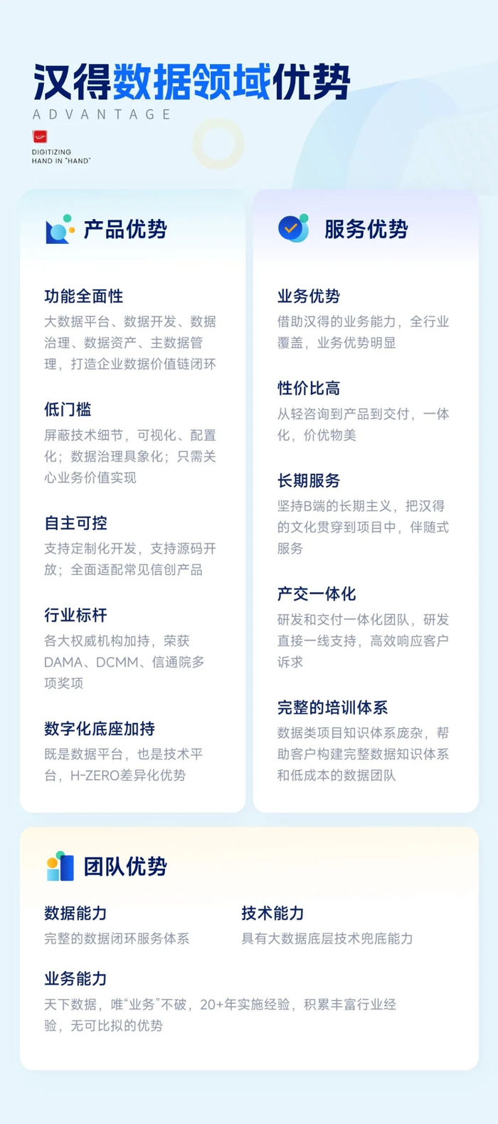 汉得之所以能成为中国数据治理解决方案市场份额的佼佼者,关键得益于汉得在数据领域的全域优势。