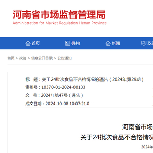 河南省市场监督管理局关于24批次食品不合格情况的通告(2024年第29期)