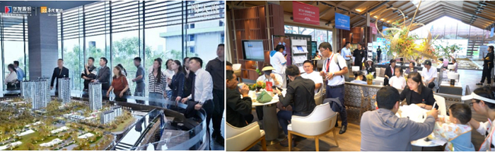 在昆明,华发书香云海蝉联昆明2022-2023两年“三冠王”,云大附中西山学校、华发新天地商业街以及早已开通的地铁,“学铁商”都是交付前兑现,“群众的眼光是雪亮的”,所以项目转化率高达24%,相当于来四个客人就有一个成交。中山华发学府壹号、惠州大亚湾自在城、宜昌城市旅游客厅国际社区等三四线城市项目同样稳居片区销冠。