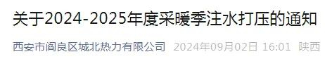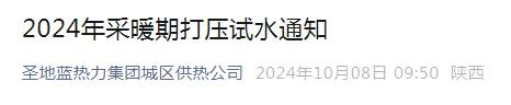 为保证2024年至2025年冬季供热期广大用户正常用热,我公司计划于10月8日起对辖区内热用户采暖系统分批次进行打压试水(每天8:30至17:30)。