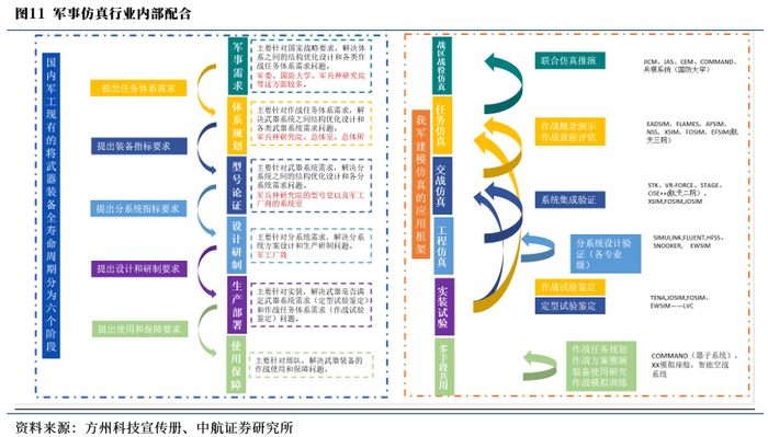 二、军事仿真特点:贯穿军工产业链,各有专精互为补充