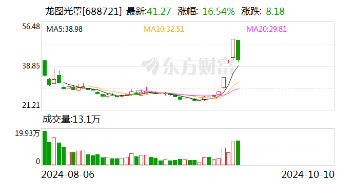 证券时报网讯,10月10日龙图光罩(688721)收盘价41.27元,收盘下跌16.54%,全天换手率52.25%,振幅21.95%,成交额5.78亿元。科创板交易公开信息显示,当日该股因日换手率达30%、日收盘价跌幅达15%等上榜。