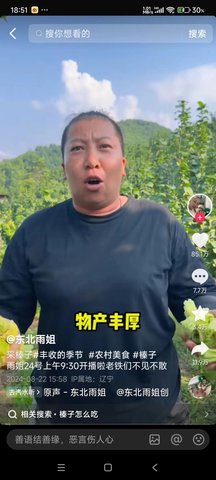 10月8日,#东北雨姐拍摄基地人去房空#冲上热搜。网红东北雨姐删除了其个人主页上的道歉视频,仅保留一份落款为“东北雨姐 2024年9月30日”的声明。国庆假期期间并未更新动态,也没有直播。