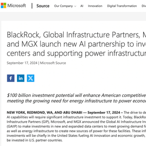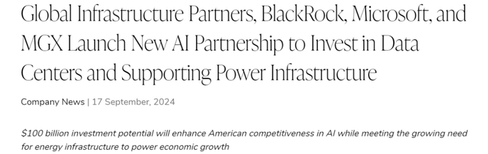 近日,全球领先的资产管理公司贝莱德与微软携手,并联合专注于基础设施投资的Global Infrastructure Partners(GIP)以及阿布扎比政府旗下的AI领域投资公司MGX,共同宣布了Global AI Infrastructure Investment Partnership(GAIIP)这一重大投资计划的成立。