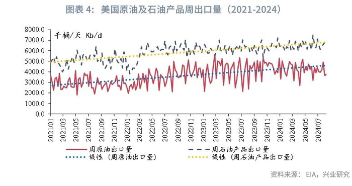 2024年为美国大选年,特朗普支持传统能源,若当选或将放宽对油气开采的监管并鼓励油气的生产和出口;哈里斯偏向清洁能源,但乌克兰危机后出于美国能源安全诉求,民主党清洁和传统能源发展并重。无论特朗普抑或是哈里斯当选,预计都将维持支持美国传统能源生产,美国原油、天然气总产量以及出口量或将继续增加。