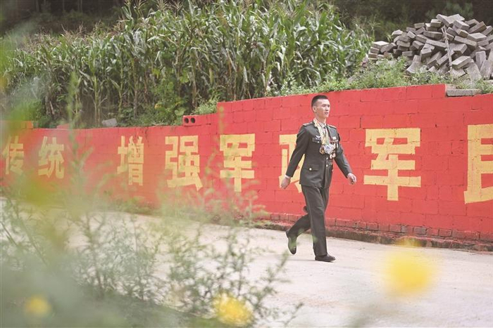 9月4日,战友们眼里的“兵王”赵海永趁着到贵阳接新兵的机会,休了一天半的假,回到“功臣村”探亲。赵海永看起来有些清瘦,但黝黑的皮肤和刚毅的脸庞流露出一个军人的气魄。