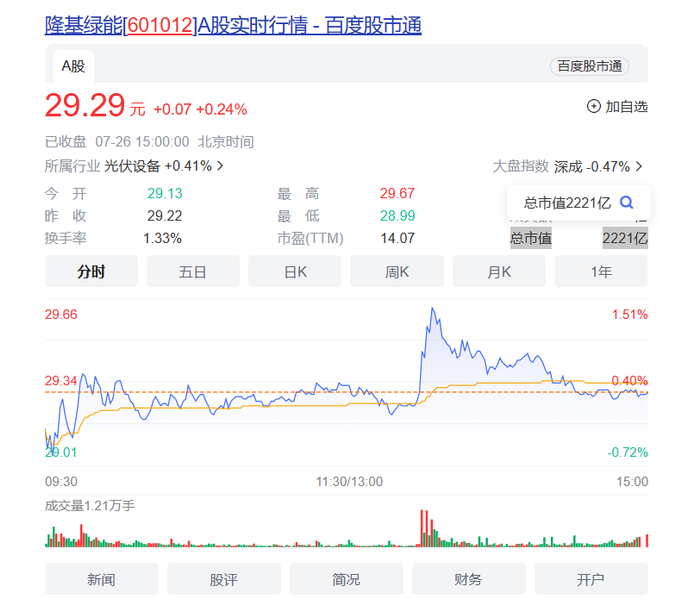 隆基绿能科技股份有限公司(股票代码:601012.SH)市值2000亿元!