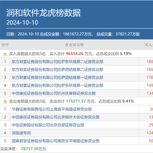 值得一提的是,除了呼家楼以外,知名游资炒股养家的常用席位华鑫证券上海宛平南路和作手新一的常用席位国泰君安证券南京太平南路当天也都出现在润和软件卖方前五位中,卖出金额分别为3.09亿元和1.63亿元。另有深股通专用席位也净卖出该股0.99亿元。
