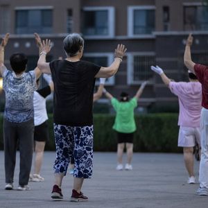 2024年7月14日,北京,老人在一个公园里锻炼身体。 视觉中国 图