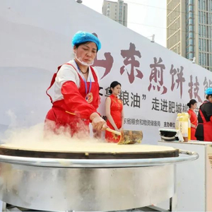 今年4月,由市发展改革委承办的“齐鲁粮油”走进肥城桃花节暨山东煎饼拼食展在肥城市举行,山东煎饼技能大赛同期举办。在现场,参赛者纷纷亮出绝技,凭借一双巧手和精湛技艺,将金黄的煎饼摊制得薄如蝉翼,散发出诱人的香气。