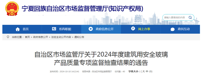 宁夏回族自治区市场监管厅公布49批次建筑用安全玻璃产品质量专项监督抽查结果