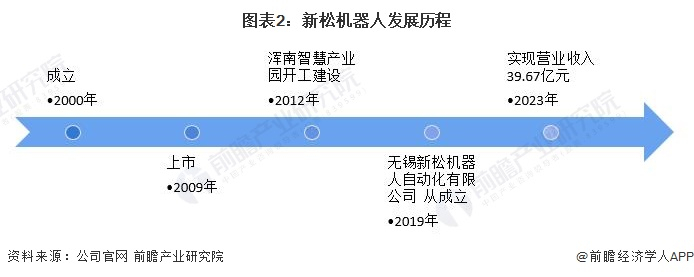 沈阳新松机器人自动化股份有限公司成立于2000年,是一家以机器人技术和智能制造解决方案为核心的高科技上市公司。新松坚持走自主创新之路,书写了中国机器人发展史上百余项“行业首创”。具体发展历程如下: