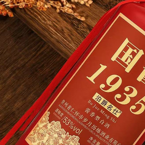 从图中可以看出,这款酒名为“国酱1935”,当然这是酒的主品牌。在酒瓶的包装上,还有几个小字——泊爵名仕,图案中,泊爵名仕几个字后面的“R”显示,泊爵名仕才是这款酒的商标。