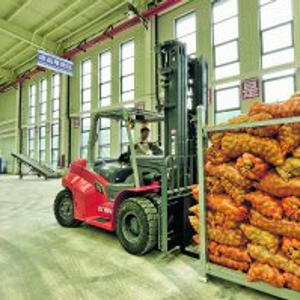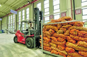 工作人员对即将出口的马铃薯进行分拣、装车。