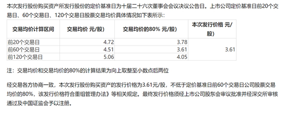 发行价是基于定价基准日之前20个、60个和120个交易日,经各方协商一致,最终以不低于60个交易日均价的80%为发行价,也是三者之中的最低价,美锦能源2023年年底经审计的净资产为3.46元/股,每股3.61元的发行价仅比每股净资产高出一线,有利于控股股东获得更多的股份。