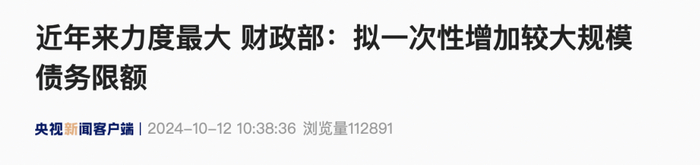 近年来力度最大,财政部:拟一次性增加较大规模债务限额