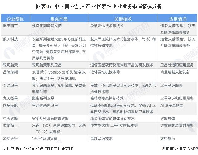中国商业航天行业代表性企业业务布局及竞争力分析