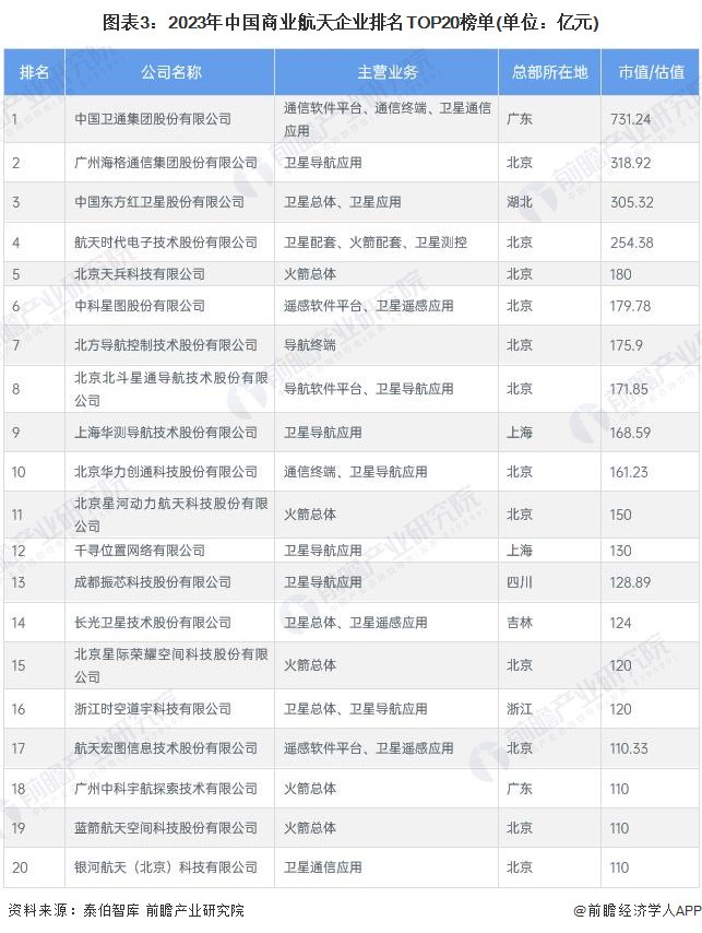 2024年1月,泰伯智库发布“2023中国商业航天企业百强”榜单,天兵科技、星河动力等企业均位列前20,商业航天TOP20企业具体如下: