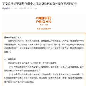 平安银行:将于25日集中批量调整存量个人住房贷款合同贷款利率