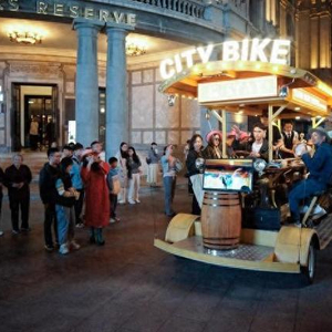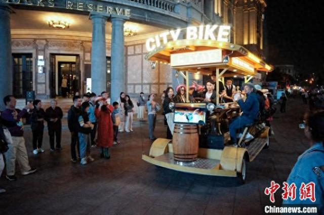 天津:游客乘坐City Bike啤酒车夜游商业街