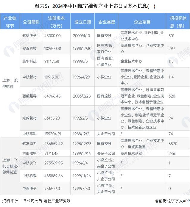 航空维修产业上市公司基本信息对比