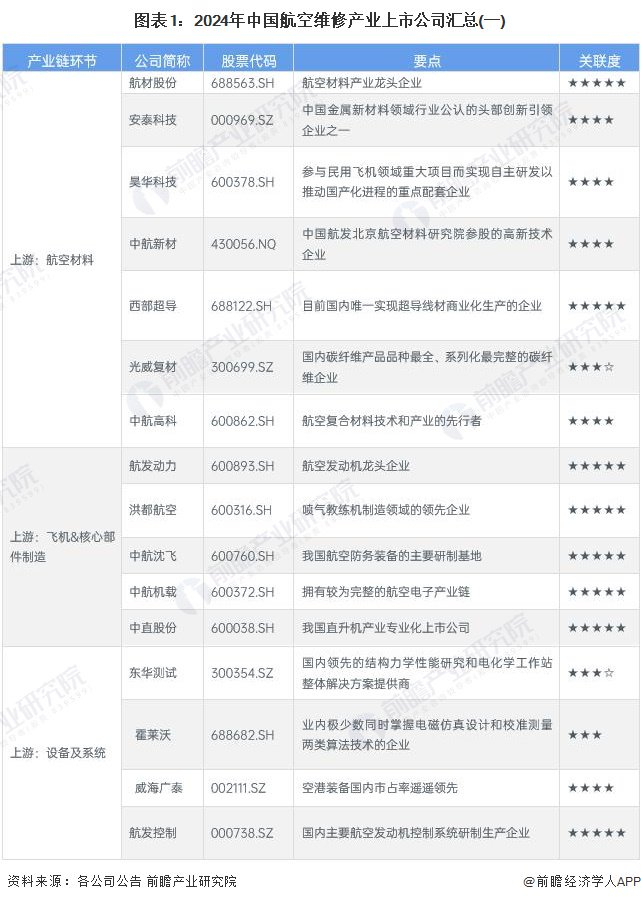 航空维修产业上市公司汇总