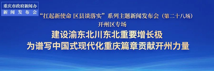 今(12)日,市政府新闻办举行“扛起新使命 区县谈落实”系列主题新闻发布会第28场,开州区围绕“建设渝东北川东北重要增长极 为谱写中国式现代化重庆篇章贡献开州力量”作主题发布,并回答媒体记者和网友们提问。