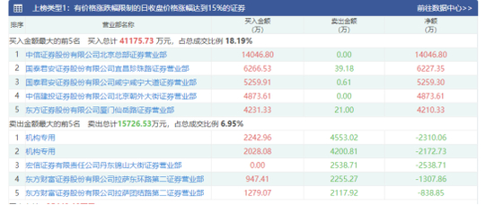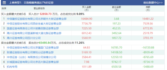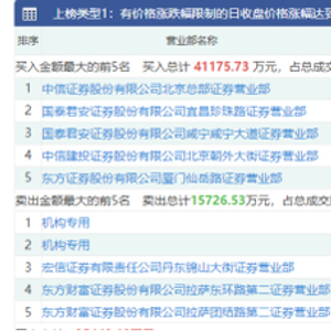 其中,四方精创因收盘涨幅达15%以上,登上深市龙虎榜。数据显示,知名游资呼家楼旗下席位中信证券股份有限公司北京总部证券营业部净买入超1.4亿元,两家机构则合计净卖出超4000万元,分列卖榜前两位。