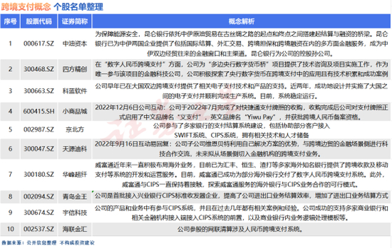 这里,笔者整理了一份与跨境支付概念高度相关的部分个股名单,希望对投资者有所帮助。