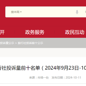 北京市旅行社投诉量前十名单(2024年9月23日-10月6日及国庆节假期)