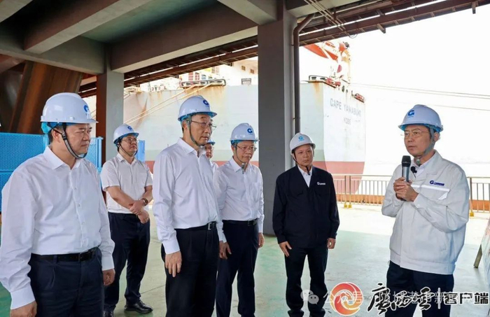 2024年5月5日,自治区党委书记刘宁到渔𬇕港区401号码头、东兴口岸调研,要求深化与越南的铁路、公路、海路等互联互通合作,助力打造国内国际双循环市场经营便利地。